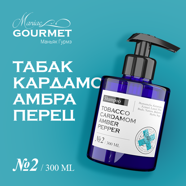 MANIAC GOURMET Шампунь парфюмированный увлажняющий №2 Табак Кардамон Амбра Черный перец 300 мл (ПЛ100/2)