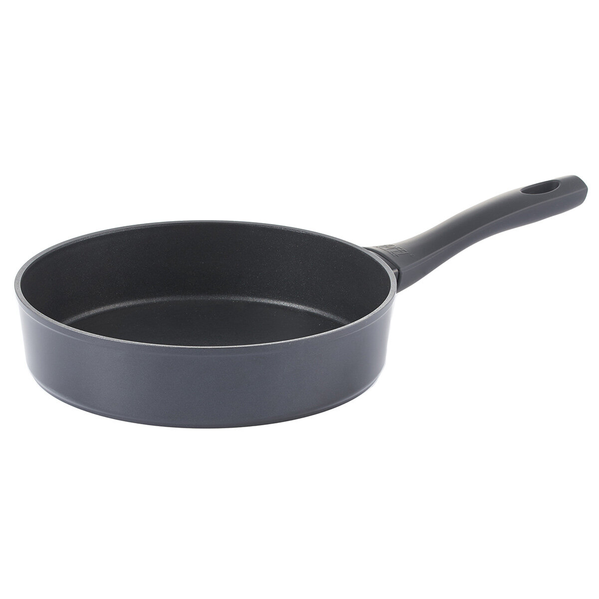Сковорода выполнена в лаконичном дизайне черного цвета. Бакелитовая ручка с покрытием Soft Touch не скользит в руке и не нагревается при использовании сковороды на плите. Толщина дна: 4,0 мм, толщина стенок: 2,5 мм.