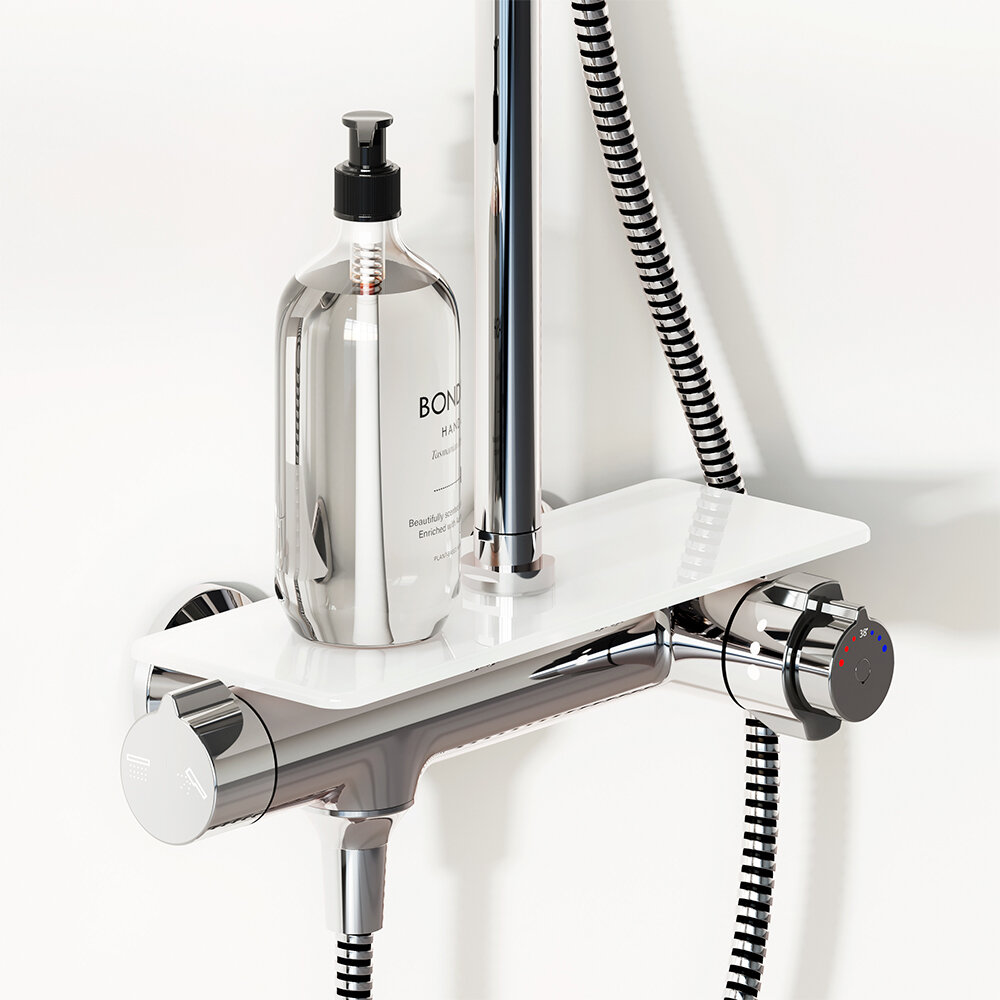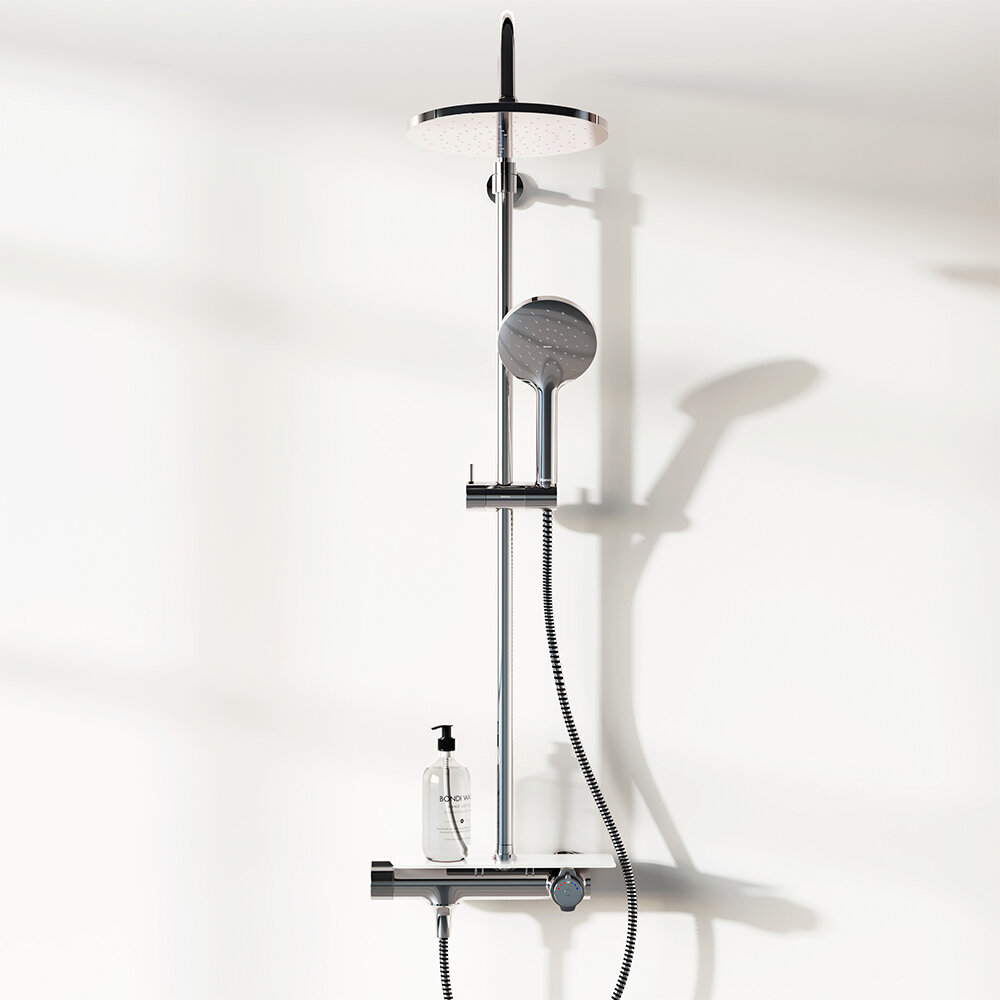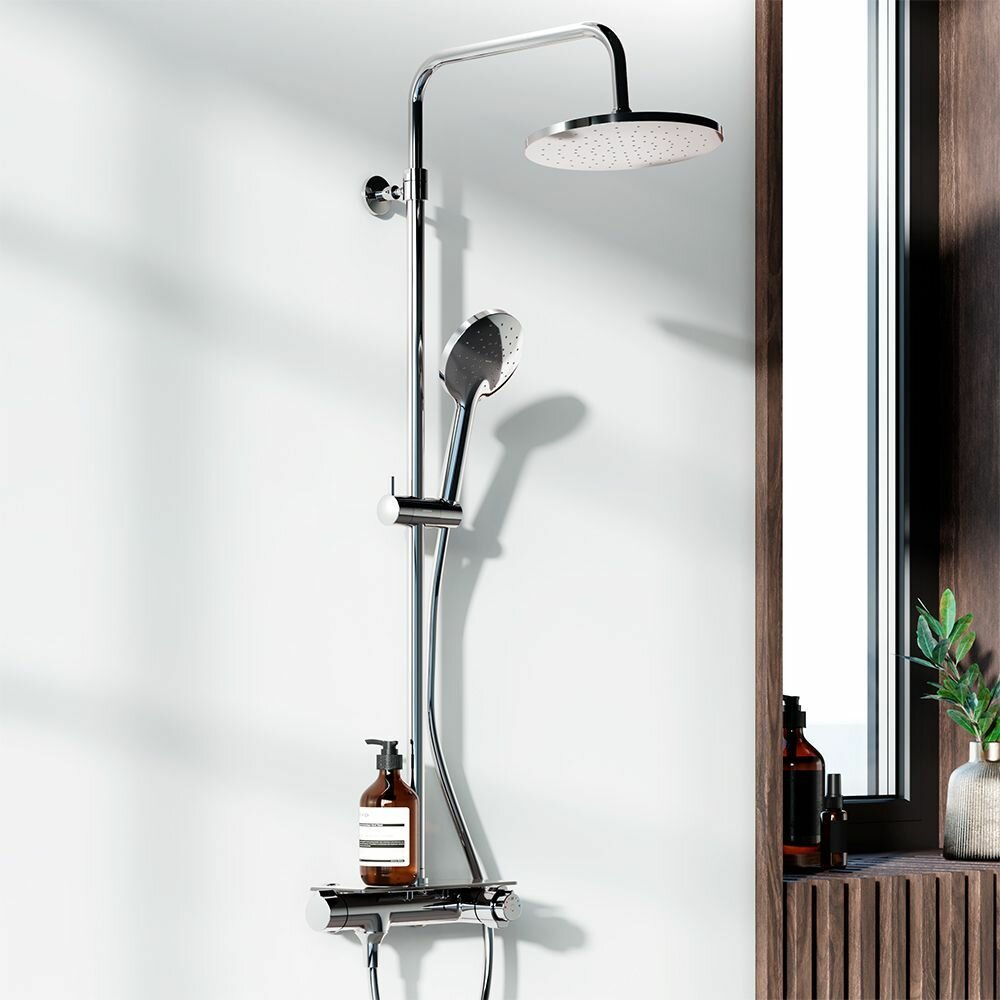 Стильный и лаконичный дизайн душевой системы Jupiter прекрасно подойдет как для классической так и для современной ванной комнаты. Максимальная безопасность: термостатический картридж 35 мм обеспечивает точную настройку температуры и напора воды. Благодаря телескопической штанге с диапазоном регулировки 400 мм ежедневные процедуры будут одинаково комфортны для людей любого роста. Большое количество форсунок с микроотверстиями которые распределяют поток мягкими равномерными струями обеспечит вам расслабляющий эффект настоящего домашнего SPA. Переключайте потоки воды между ручной и тропической лейками плавным поворотом дивертора. Угол наклона тропической лейки можно регулировать. Инновационное покрытие High Gloss надежно защищает хромовую поверхность душевой системы от мелких повреждений и сохраняет ювелирный блеск на долгие годы.