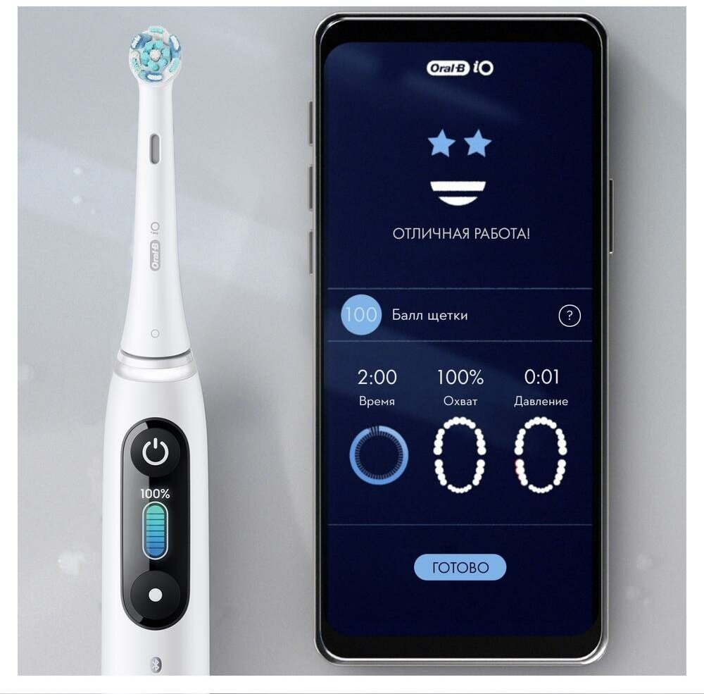 Электрическая зубная щётка Braun Oral-B iO8 обеспечивает ощущение профессиональной чистки и бережное очищение каждый день. Интерактивный цветной дисплей отображает важную информацию: текущий режим чистки, 2-минутный таймер, уровень заряда батареи и напоминание о замене насадки. Кроме того, он приветствует вас при включении и улыбается, если вы провели качественную чистку. Умный датчик сигнализирует красным световым сигналом о чрезмерном надавливании и зелёным - о правильной чистке. Магнитное зарядное устройство с фиксацией щётки обеспечивает полную зарядку примерно за 3 часа. В комплект входят 2 электрические зубные щётки Braun Oral-B iO8 с 2-мя насадками, магнитная зарядная станция, дорожный футляр и футляр для насадок.
