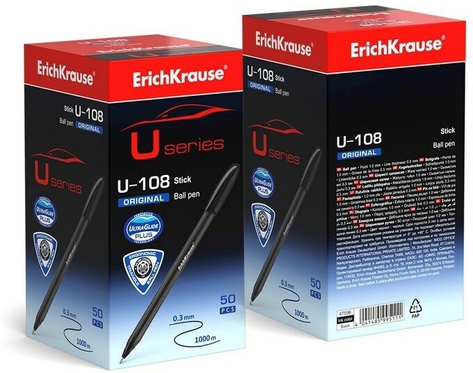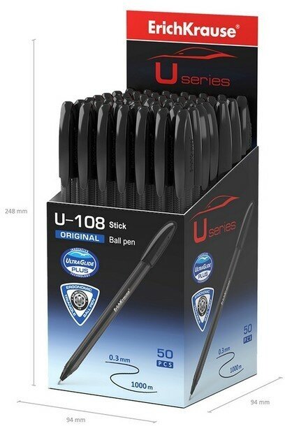 Ручка шариковая ErichKrause U-108 Original Stick 1.0 Ultra Glide Technology черная 1 шт