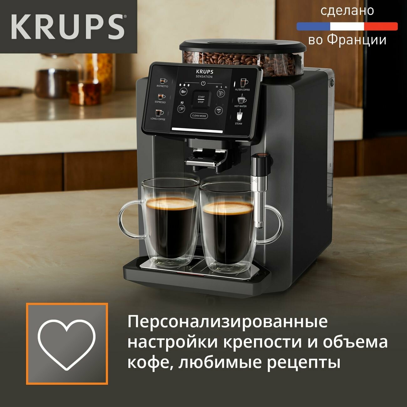 Для чашки идеального кофе достаточно лишь ваше желание — автоматическая кофемашина Krups Sensation возьмет всю работу на себя. Вам останется только самое приятное — наслаждаться ароматом и вкусом свежесваренного напитка. Обо всех тонкостях и нюансах позаботится технология Barista Inside, которая самостоятельно следит за каждым этапом приготовления кофе. Сенсорная панель управления, настраиваемые рецепты и световая индикация помогут получить чашку желанного напитка всего за несколько касаний. А полностью автоматическая программа очистки гарантирует, что вкус кофе останется неизменно великолепным.