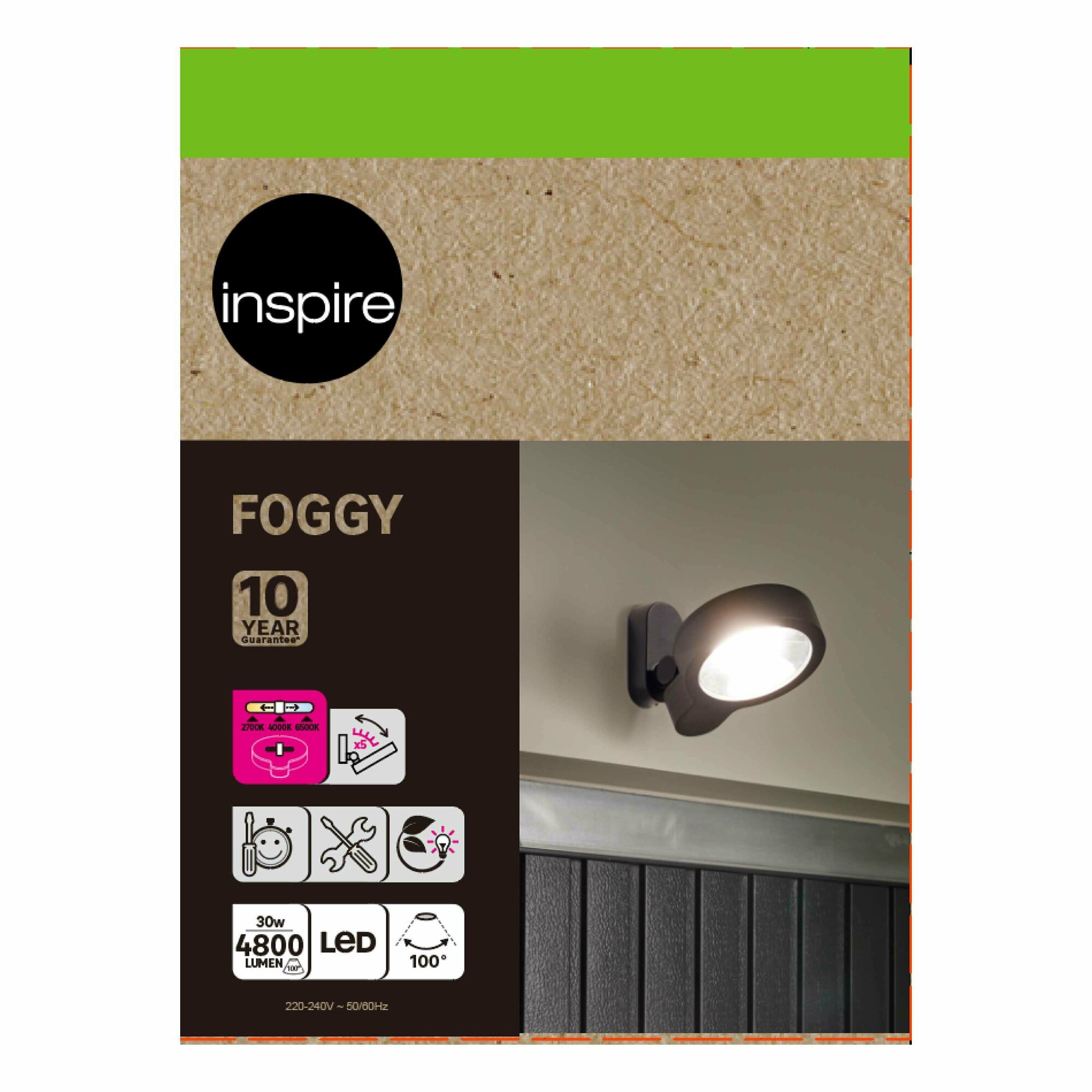 **Прожектор светодиодный SMD Inspire «Foggy»** обеспечивает высокую яркость освещения. Холодный белый свет с температурой цвета 2700, 4000, 6500 K создает комфортные условия для ночной активности. Световой поток составляет 3200 Лм, обеспечивая равномерное освещение больших площадей. Прожектор имеет защиту IP44, что делает его подходящим для использования во влажных условиях. Простой в установке и использовании, благодаря устройству управления через настенный выключатель.