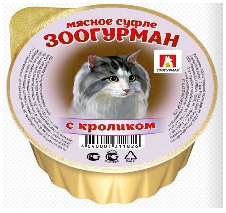 Корм для кошек "Мясное суфле" с кроликом 100г Зоогурман