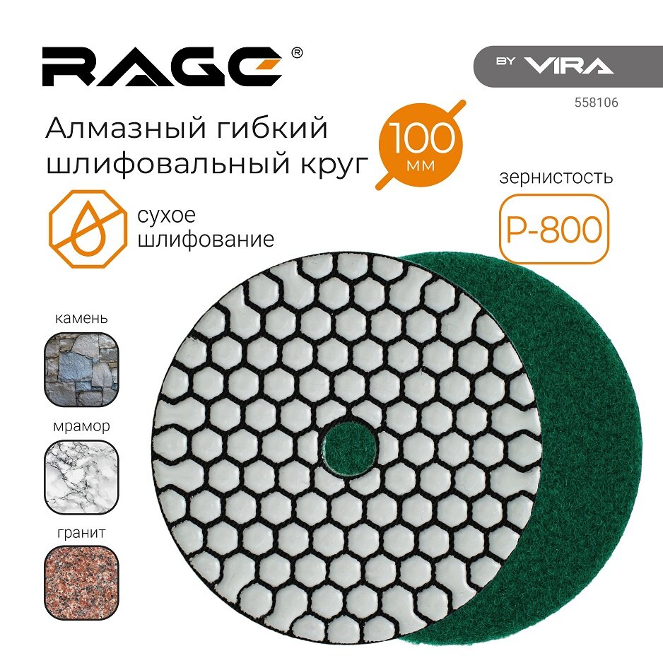**Шлифовальный круг алмазный гибкий P800 (АГШК) Rage** разработан специально для сухого типа шлифования