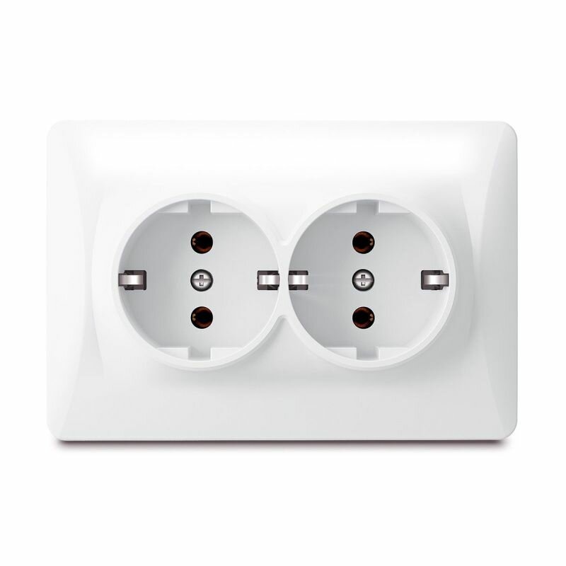 Розетка двойная встраиваемая Gusi Electric с заземлением со шторкой цвет белый