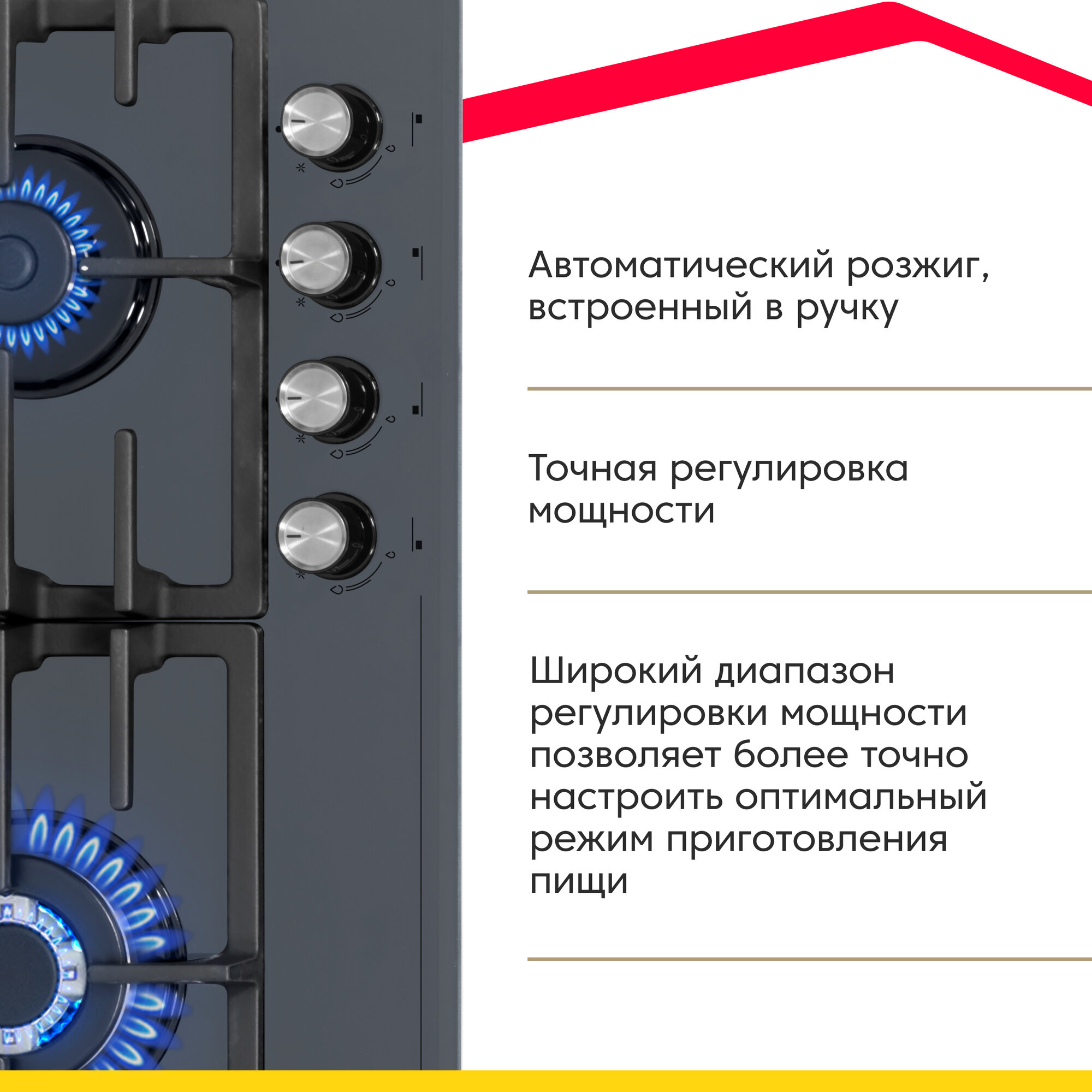 Одной из главных особенностей этой модели является газ-контроль. Он обеспечивает безопасность использования варочной поверхности и предотвращает возможные утечки газа.
