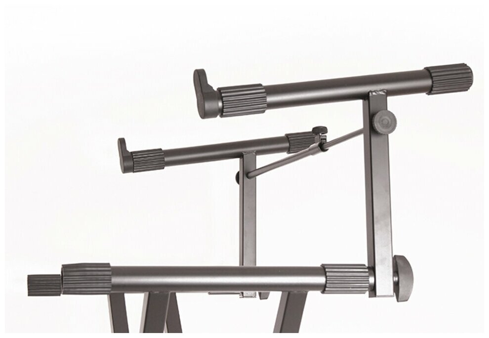 X-образная стойка серии SF, предназначена для установки двух клавишных инструментов. Конструкция стойки сделана из стали и имеет черное покрытие. ● Высота регулируется свободно ● Масштабная линейка помогает регулировать высоту ● Имеет второй уровень ● Элегантный контур, легкий вес ● Высота: 620 – 920 мм ● Длина держателей: 30 (диаметр) х 350 мм ● Материал: сталь ● Вес: 7 кг ● Грузоподъемность: 60 кг
