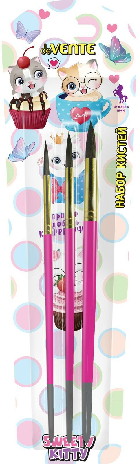 Набор кистей deVENTE "Sweet Cats" 3 шт, пони № 2, 4, 7, в картонном блистере (8072215). Качественный товар по выгодной цене!