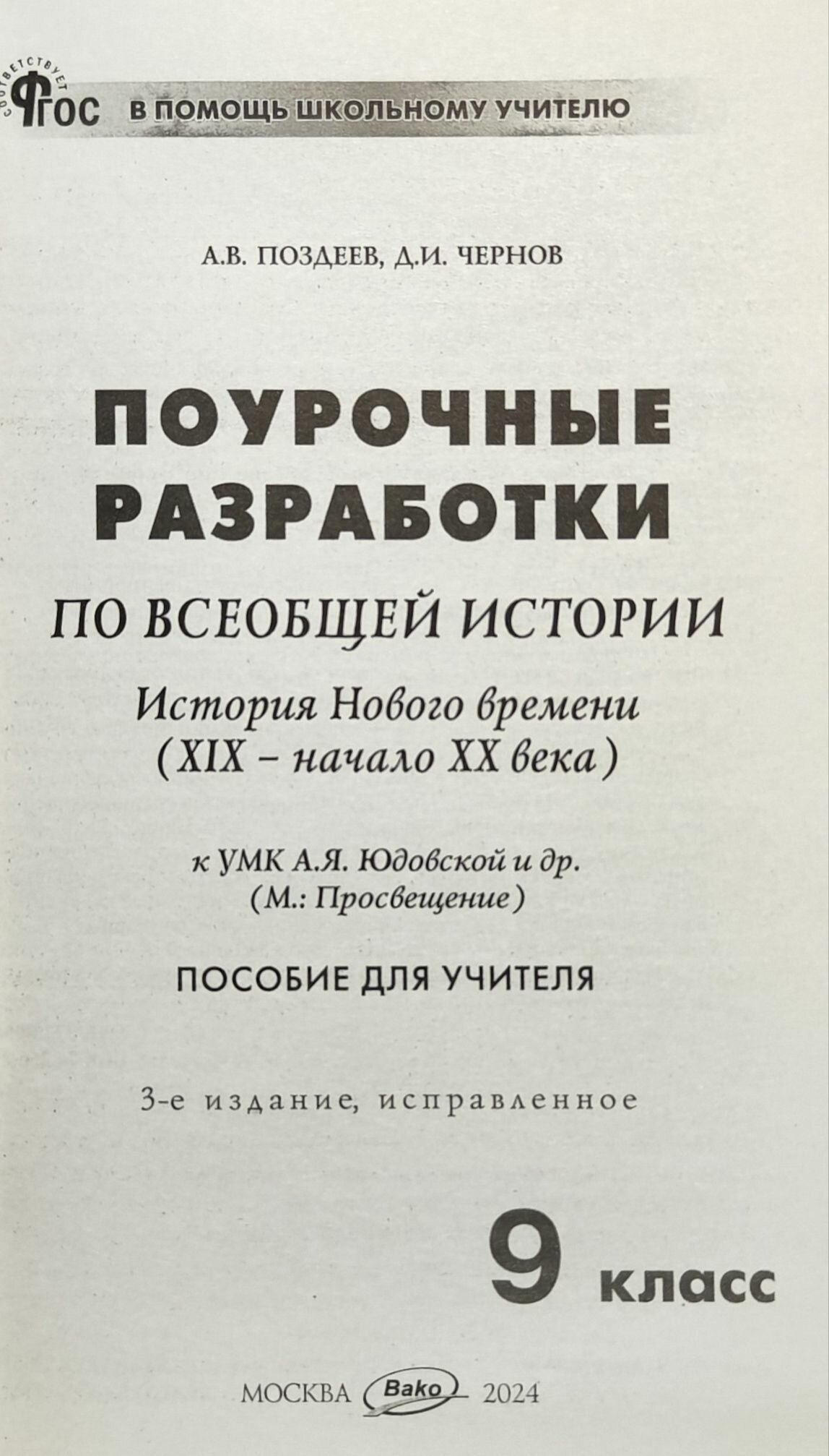 Всеобщая история. История Нового времени. 9 класс. Поурочные разработки к УМК А. Я. Юдовской (Чернов Данила Иванович, Поздеев Алексей Владимирович); Вако, 2024