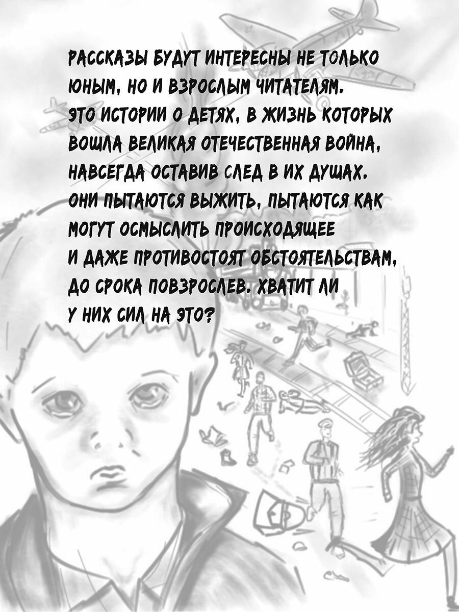 Рассказы будут интересны не только юным, но и взрослым читателям. Это истории о детях, в жизнь которых вошла Великая Отечественная война, навсегда оставив след в их душах. Они пытаются выжить, пытаются как могут осмыслить происходящее и даже противостоят обстоятельствам, до срока повзрослев. Хватит ли у них сил на это? Но даже тогда, когда уже отгремели последние залпы на полях сражений, война продолжала тревожить сердца ребят.