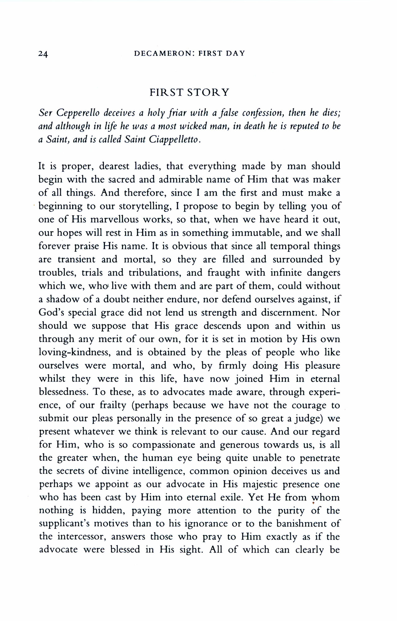 Taken from the Greek, meaning 'ten-day event', Boccaccio's Decameron sees his characters amuse themselves by each telling a story a day, for the ten days of their confinement - a hundred stories of love and adventure, life and death, and surprising twists of fate. Less preoccupied with abstract concepts of morality or religion than earthly values, the tales range from the bawdy Peronella, hiding her lover in a tub, to Ser Cepperallo, who, despite his unholy effrontery, becomes a Saint. The result is a towering monument of European literature and a masterpiece of imaginative narrative that has inspired writers from Chaucer to Shakespeare .
