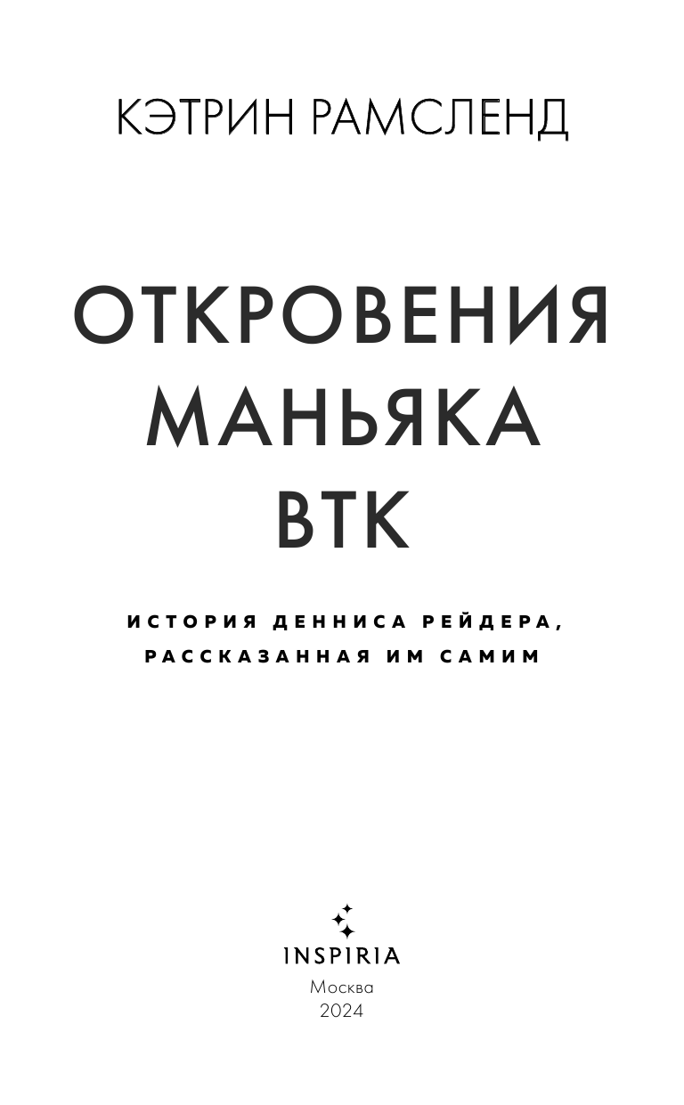Откровения маньяка BTK. История Денниса Рейдера рассказанная им самим (Кэтрин Рамсленд); Эксмо, Inspiria, Редакция 1, 2023