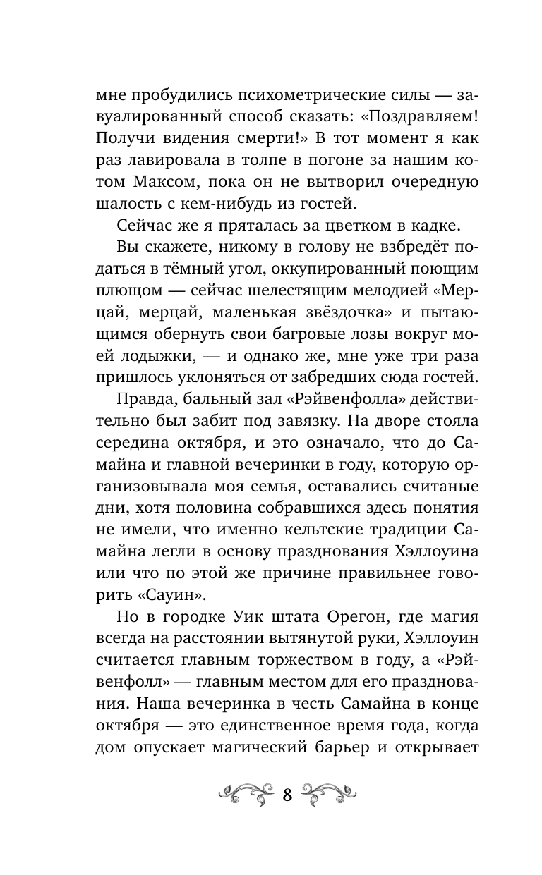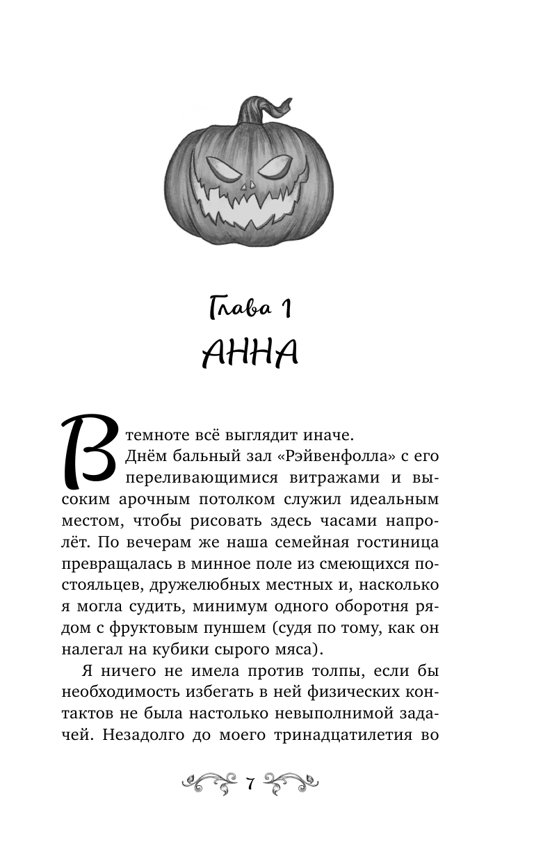 Гостиница «Рэйвенфолл» — приют для всех, кто хочет вдоволь надышаться лесным воздухом, насладиться уютом и пряными напитками, а также спрятаться от могущественных врагов из Потустороннего мира. Анна уже привыкла, что её семья владеет самым необычным отелем на свете. Но когда на их пороге появляется загадочный мальчик Колин, Анна понимает: грядёт что-то очень таинственное и страшное… Ведь именно Колин был в её последнем видении, в котором умерло целых два человека! Кто же этот парнишка во фланелевой рубашке с пятнами крови? Что он здесь ищет? И почему кажется, что ему очень-очень нужна помощь?
