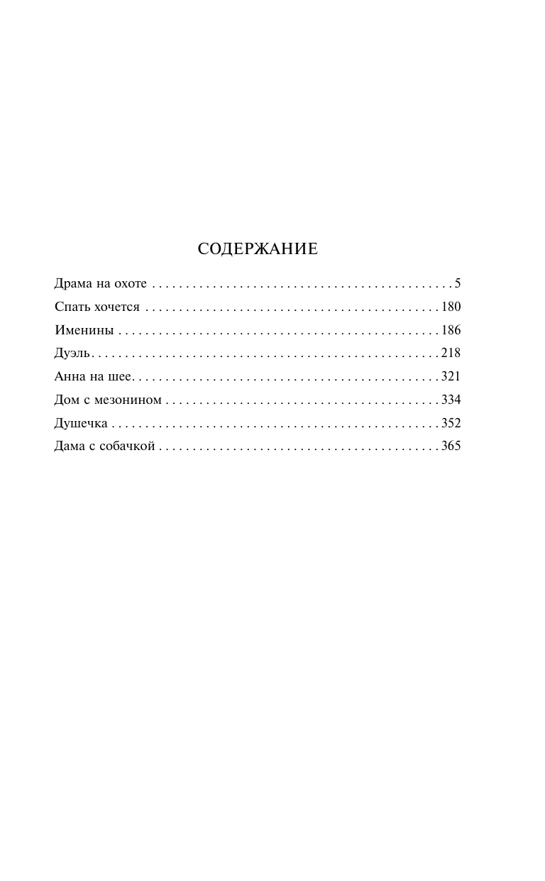 В этой книге собраны его повести и рассказы на эту тему: «Драма на охоте», «Спать хочется», «Именины», «Дуэль», «Анна на шее», «Дом с мезонином», «Душечка» и «Дама с собачкой».