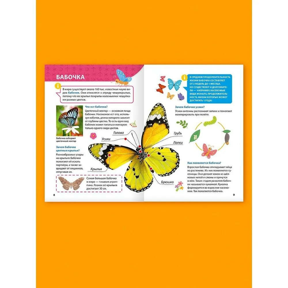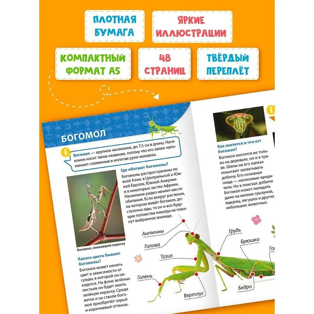 Приглашаем всех маленьких любителей природы познакомиться с удивительными существами — насекомыми! На страницах яркой познавательной книги малыш встретит не только изображения уже знакомых бабочек и пчёл, но и таких редких представителей мира насекомых, как палочник, богомол и светлячок. Что ест кузнечик, как дышит водяной скорпион, почему клопа называют солдатиком — ответы на все эти вопросы, а также множество интересных фактов ребёнок найдёт в нашей увлекательной энциклопедии!