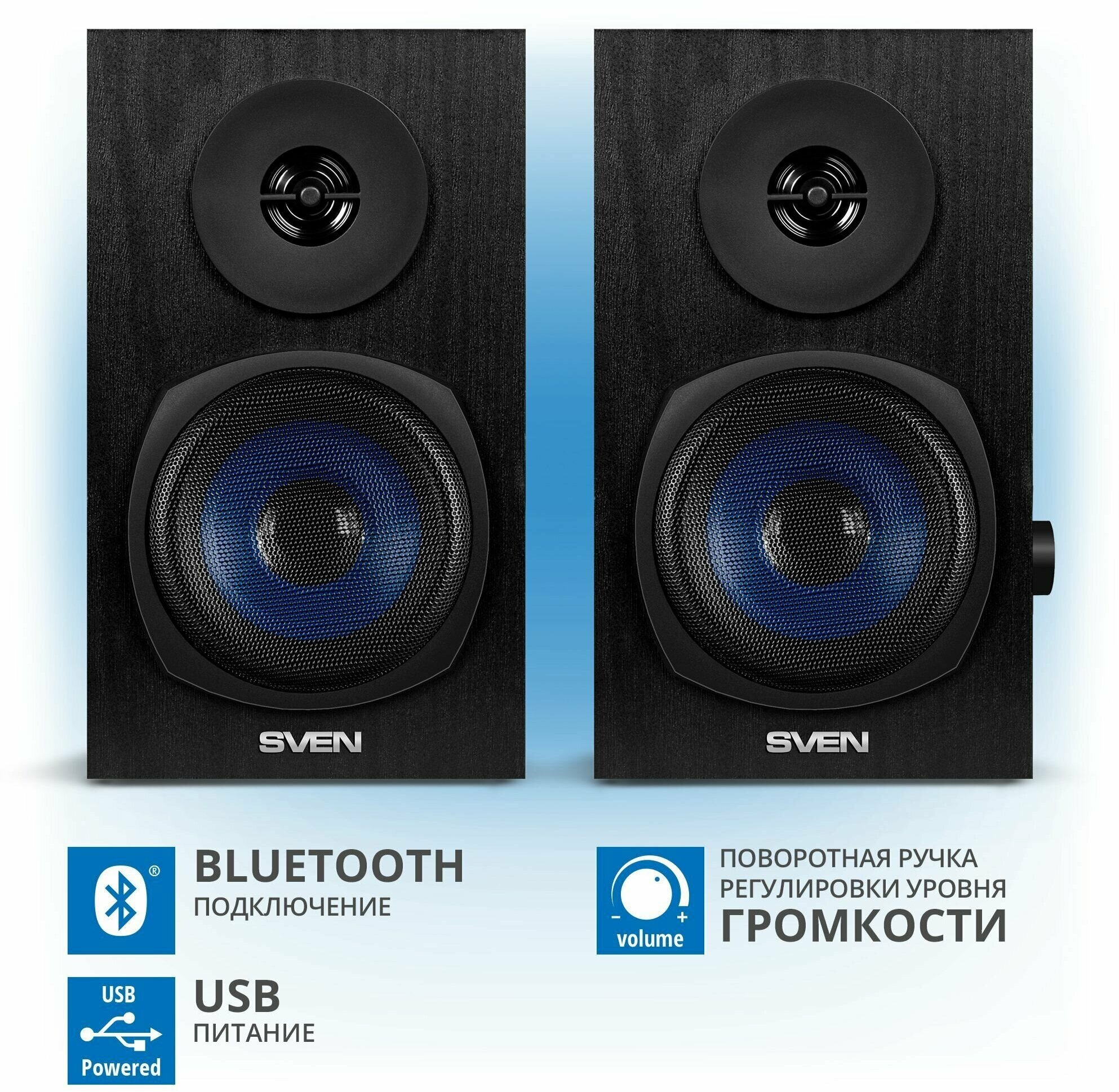 Компьютерная акустика 2.0 Sven черный (8 Вт питание USB BT) SPS-576