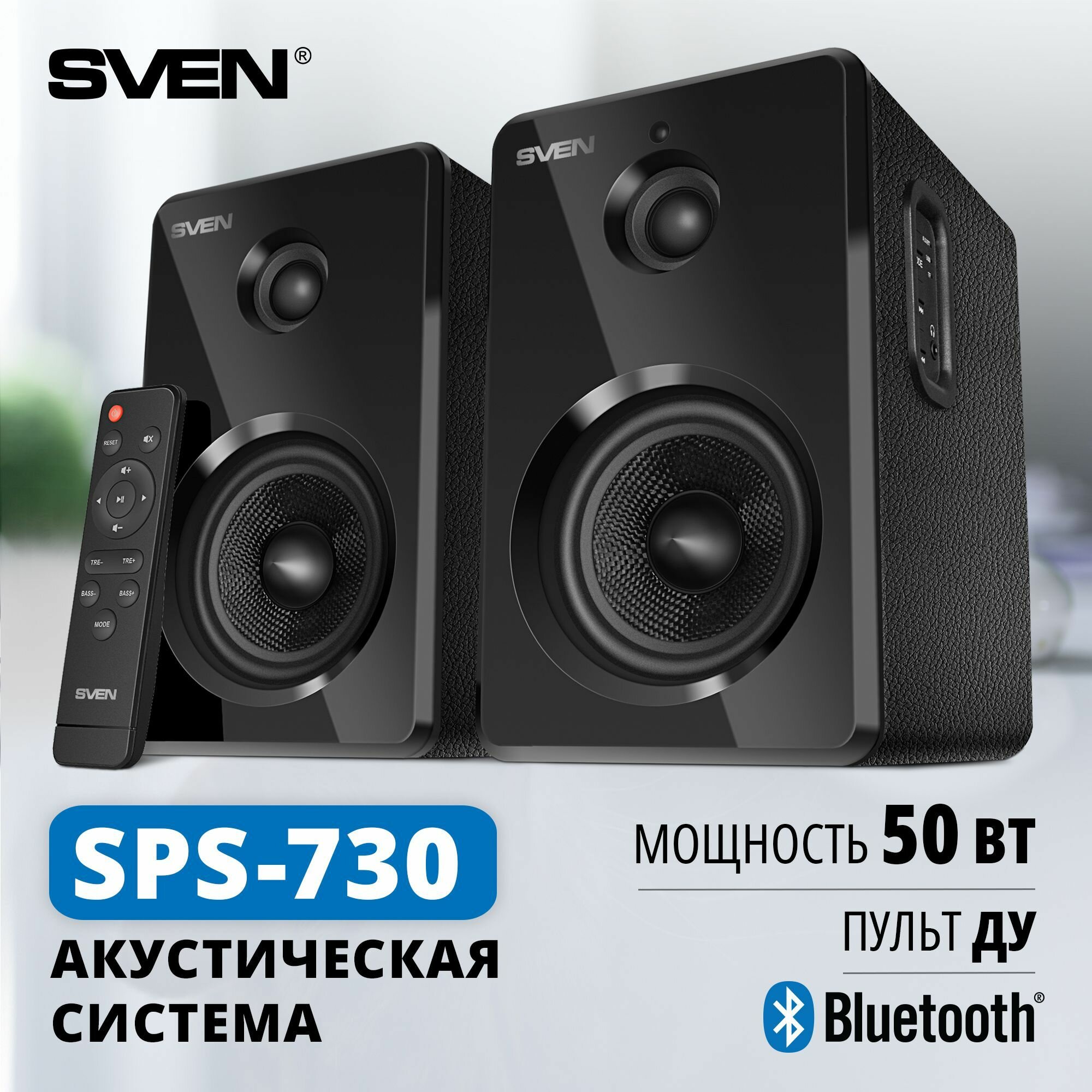 Компьютерная акустика 2.0 Sven черный (50 Вт BT пульт USB microSD) SPS-730