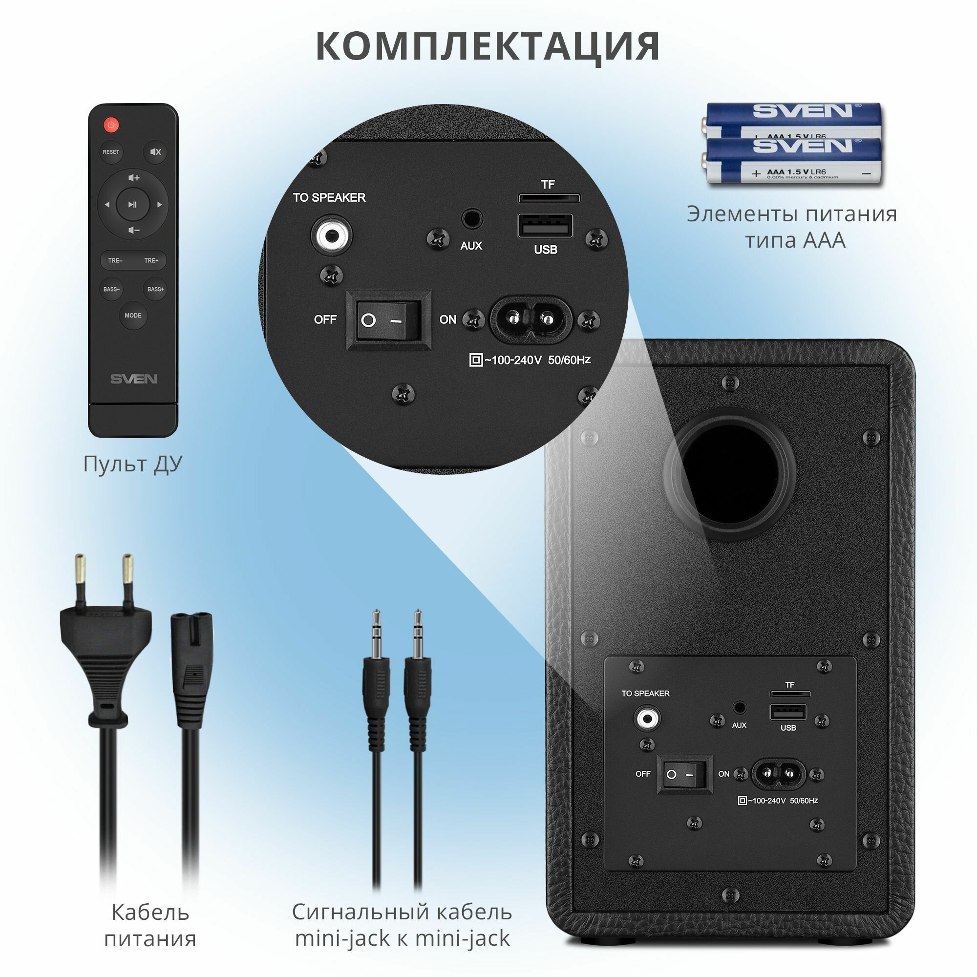 | Комплектация | Акустика, Документация, Пульт ДУ |