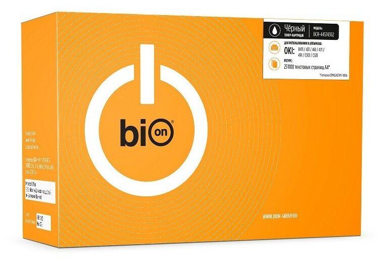 Картридж BION 44574302 для OKI B411/431/461/471/491/C301/C531 (25000 стр.) Черный BCR-44574302