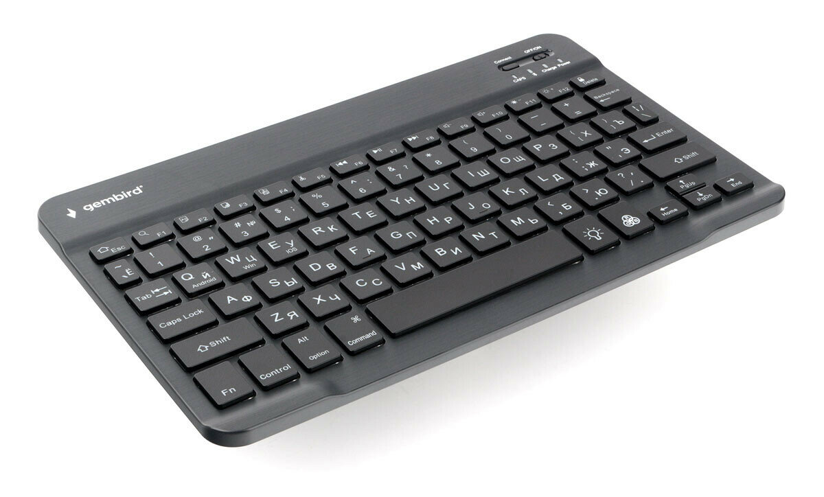 Клавиатура беспроводная Gembird выделяется компактными размерами, малой толщиной корпуса и встроенной светодиодной подсветкой. Данная модель оснащена 78 клавишами ножничного типа, которые обеспечивают быстрый плавный отклик с низким уровнем шума. Клавиатура подключается к необходимому устройству беспроводным способом благодаря модулю Bluetooth, а автономная работа осуществляется на основе перезаряжаемого аккумулятора.