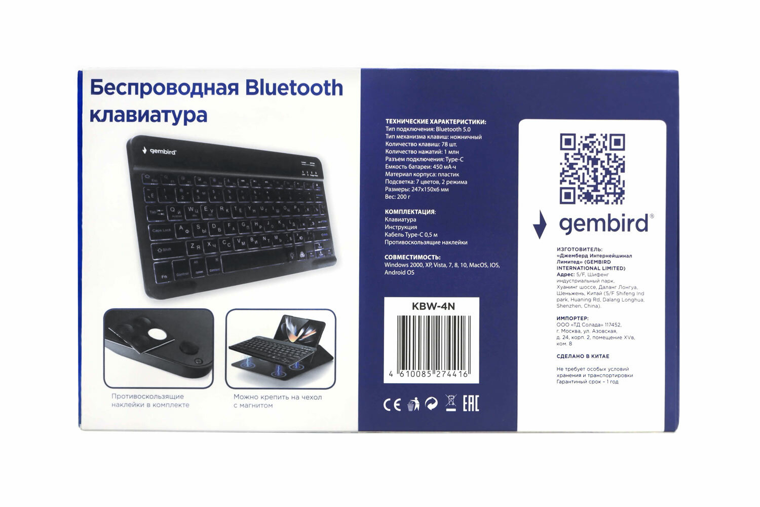 Клавиатура беспроводная Gembird 78кл. ножнич. BT 5.0 подсв. 7 цв. Type C 500мАч черная KBW-4N