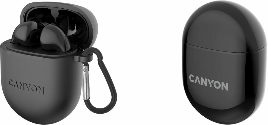 Наушники беспроводные Canyon с микрофоном soft touch силиконовый чехол с карбином BT аккумулятор в наушниках 30 мАч*2+чехол для зарядки 400 м TWS-6