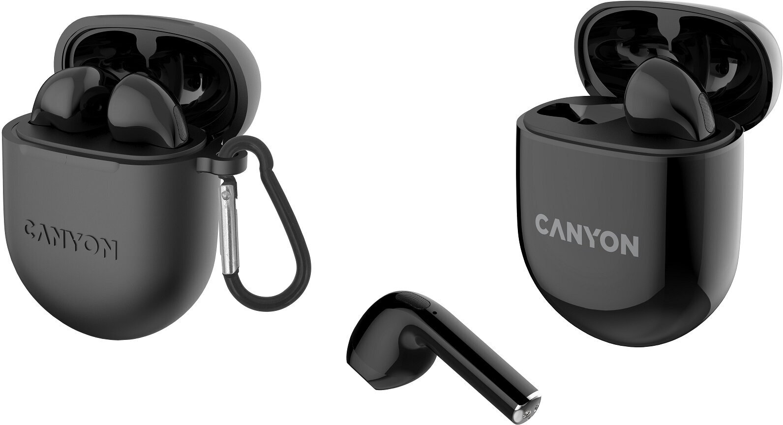 Сервис сравнения цен СкидкаГИД предлагает сравнить цены на товар «Наушники беспроводные Canyon с микрофоном soft touch силиконовый чехол с карбином BT аккумулятор в наушниках 30 мАч*2+чехол для зарядки 400 м TWS-6»