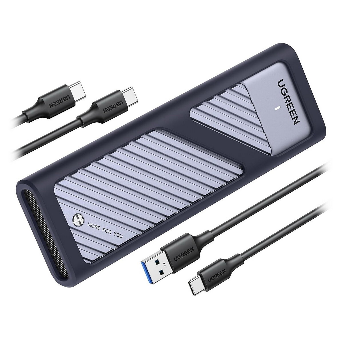Бокс UGREEN 15511_ внешний для жесткого диска M.2 NVMe SSD Enclosure 10Gbps с кабелем USB-C к USB-C и USB-C к USB-A серый космос CM559