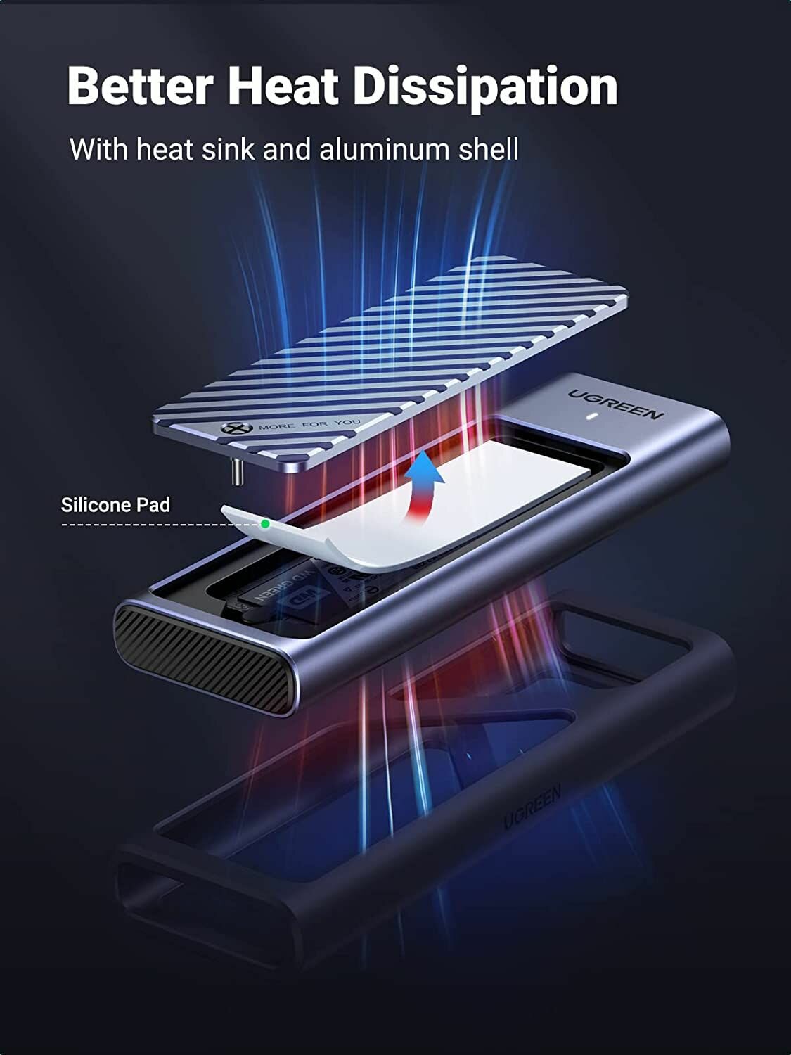 Сервис сравнения цен СкидкаГИД предлагает сравнить цены на товар «Бокс UGREEN 15511_ внешний для жесткого диска M.2 NVMe SSD Enclosure 10Gbps с кабелем USB-C к USB-C и USB-C к USB-A серый космос CM559»