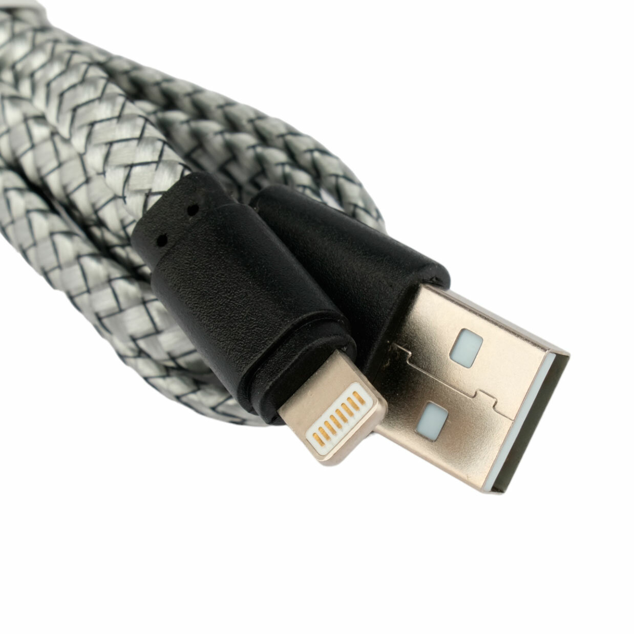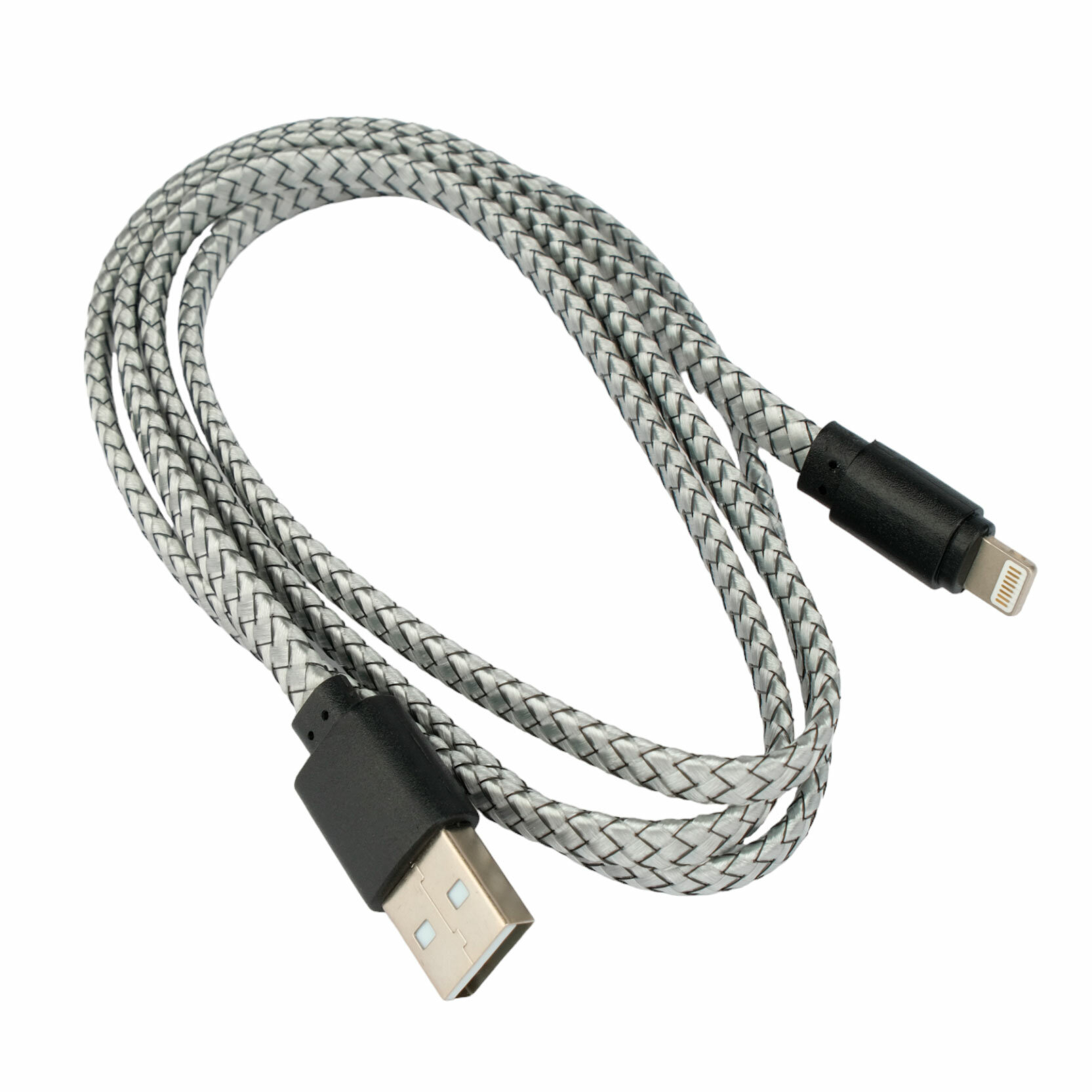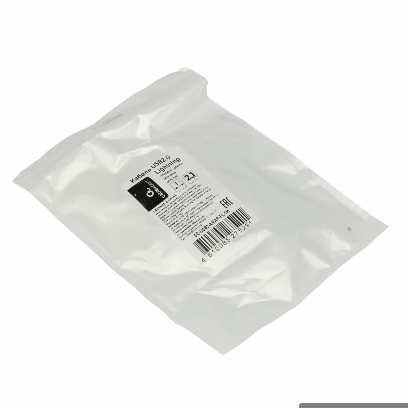Кабель интерфейсный USB 2.0 Cablexpert плоский AM/Lightning 2.1А12Вт медь нейлоновая оплетка 1м серый пакет CC-USB2-AMAP-FL-1M