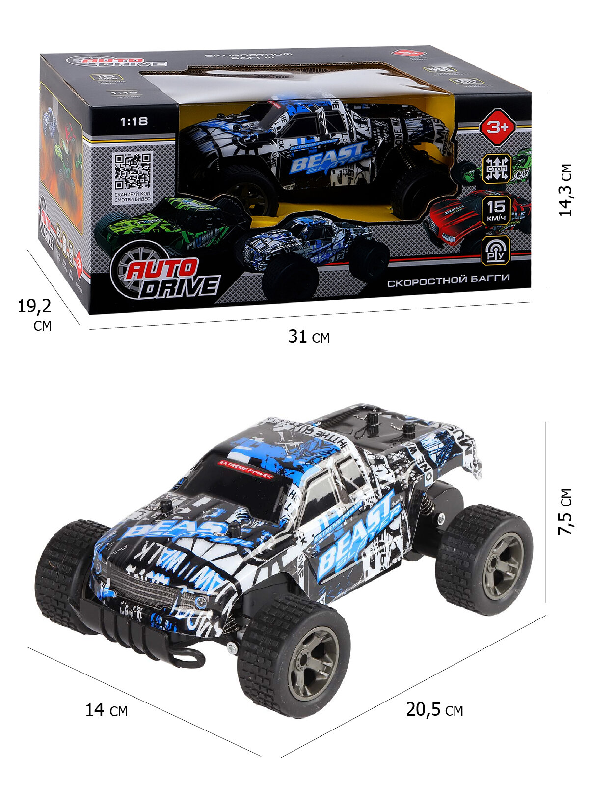 Скоростной багги на радиоуправлении торговой марки AUTODRIVE прекрасно подходит как для игры дома, так и на улице. Машинку по достоинству оценят и маленькие любители скорости, и их родители.