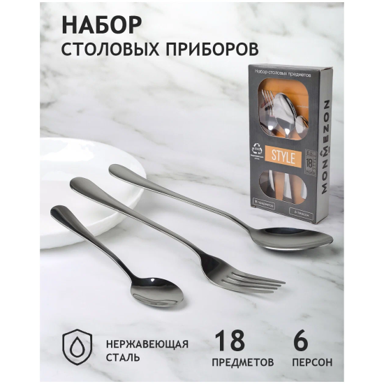 На сегодняшний день товар «Набор столовых приборов 18 предметов СТИЛЬ MONMEZON MGOL02» можно купить с кешбеком в 1 магазине: Яндекс.Маркет