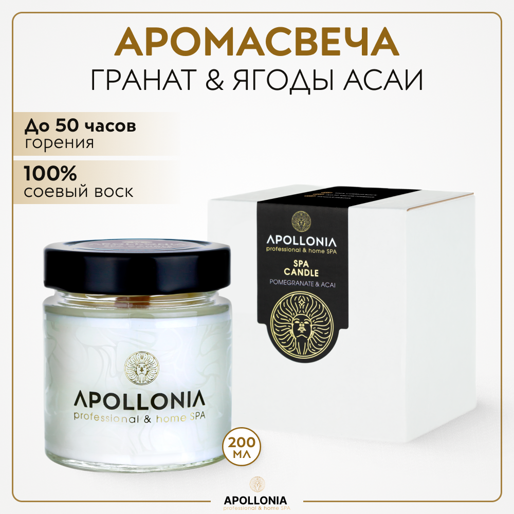 APOLLONIA Свеча ароматическая / POMEGRANATE & ACAI SPA CANDLE 200 мл (10390)