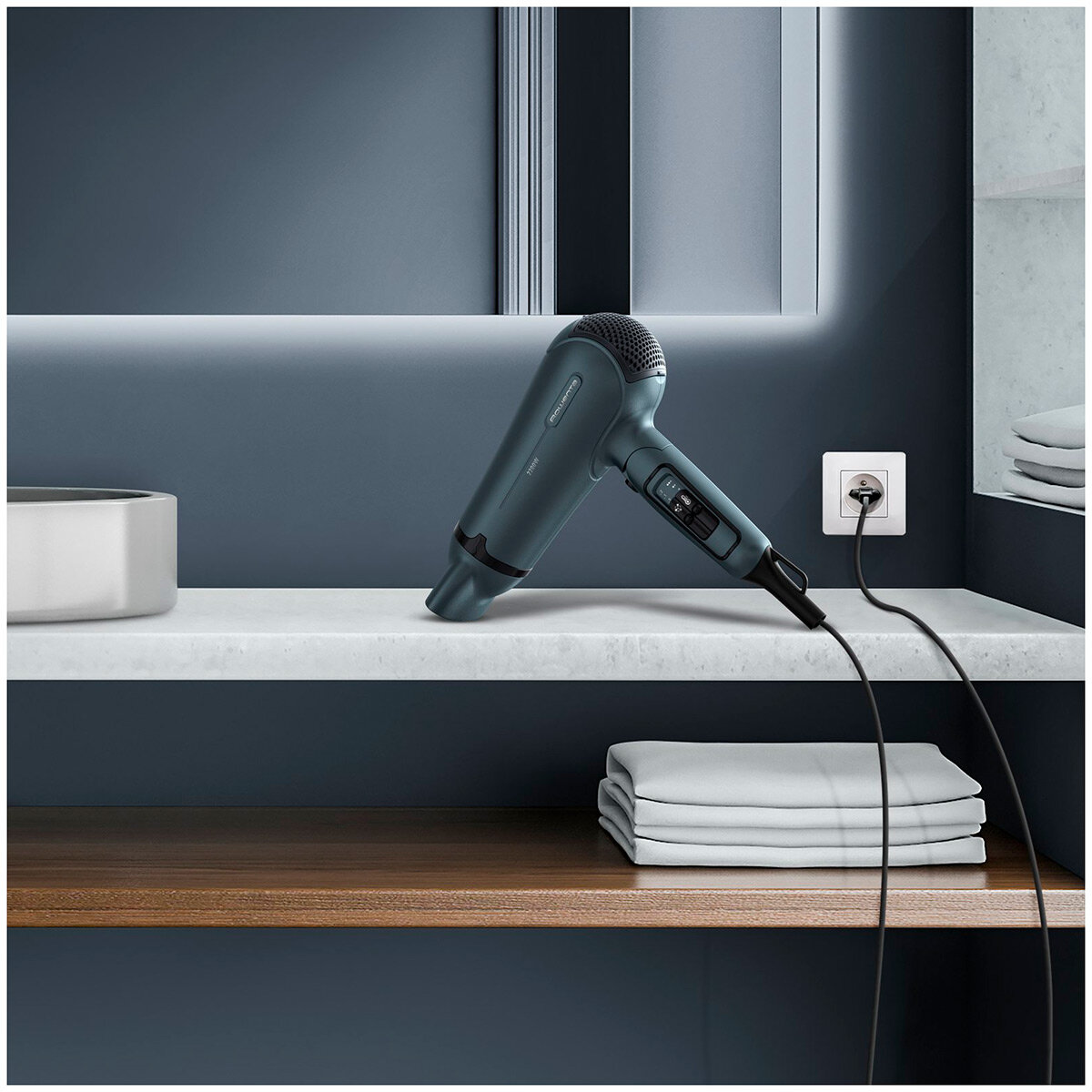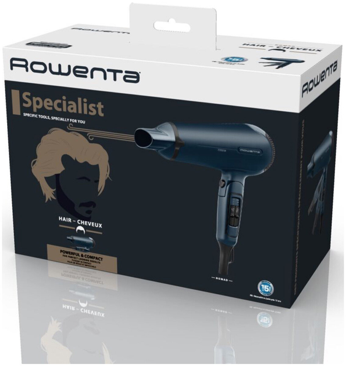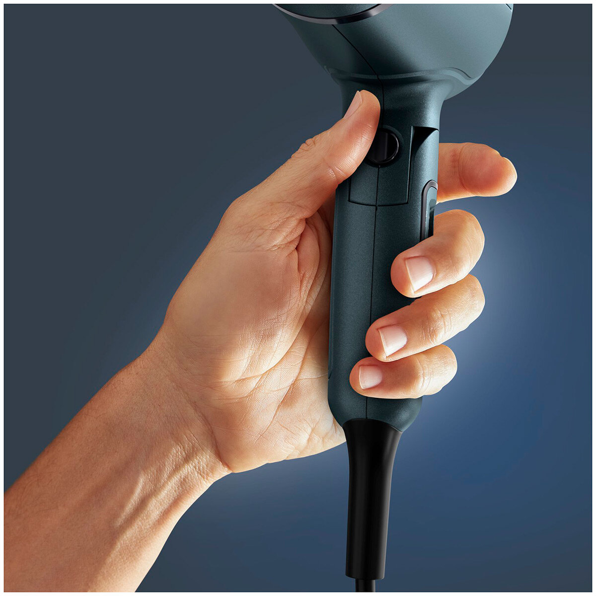 Это превосходный мощный фен с удобным дизайном для внимательного к уходу за собой мужчины. Фен оснащен мотором мощностью 2200 Вт, создает воздушный поток со скоростью 100 км/ч, а также имеет три режима температуры и два режима скорости. Благодаря компактному размеру и складной ручке его можно удобно хранить и брать с собой, чтобы использовать в любое время и в любом месте. Дополняет набор преимуществ кнопка холодного обдува и длинный шнур для удобства использования.