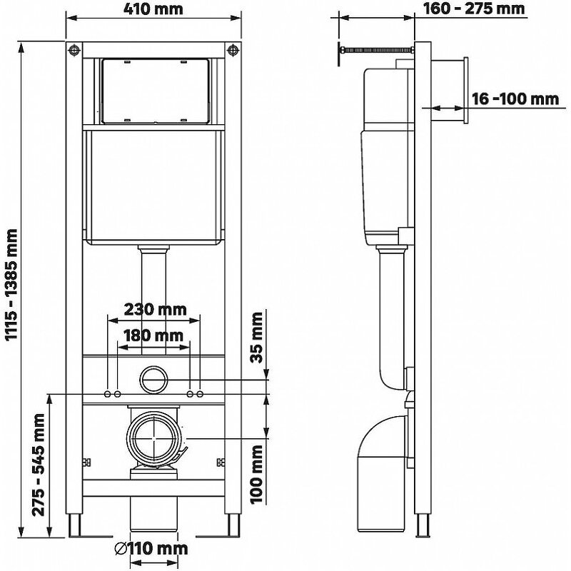 - Размеры (ШхВхД): 410х1115-1385х160-275 мм.