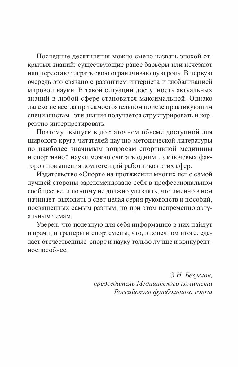 В руководстве на основе принципов доказательной медицины рассматриваются ключевые для профессиональных футболистов вопросы контроля переносимости нагрузок, повышения физической работоспособности и оптимизации постнагрузочного восстановления, описываются средства и методы, наиболее часто применяемые для этих целей. Отдельная глава посвящена антидопинговой безопасности при использовании тех или иных средств и методов.