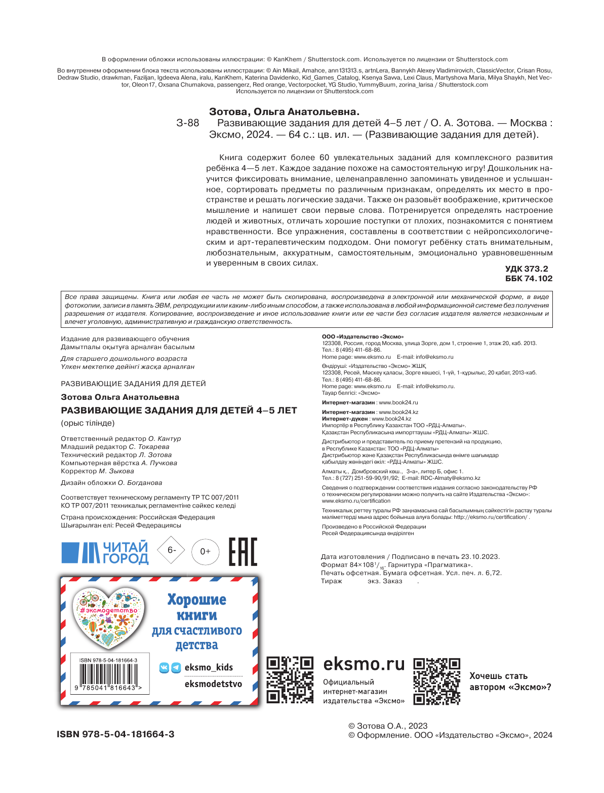 Развивающие задания для детей 4-5 лет (Зотова Ольга Анатольевна); ООО "Издательство "Эксмо", 2023