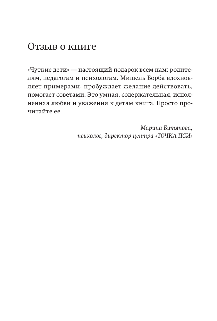 Эмпатия в наши дни — не приятное дополнение к развитию, а неотъемлемая часть успеха и благополучия наших детей. Зачем детям быть чуткими? Прежде всего, это положительно влияет на их психическое здоровье и уверенность в себе, служит прививкой против буллинга, сказывается на успеваемости и помогает найти себя в дальнейшей жизни. Эмпатию можно и нужно развивать. Автор книги, педагог-психолог с мировым именем, разработала 9-ступенчатую программу развития детской эмпатии. Следуя ее рекомендациям, можно улучшить навыки чуткости и взаимопонимания в любом возрасте.