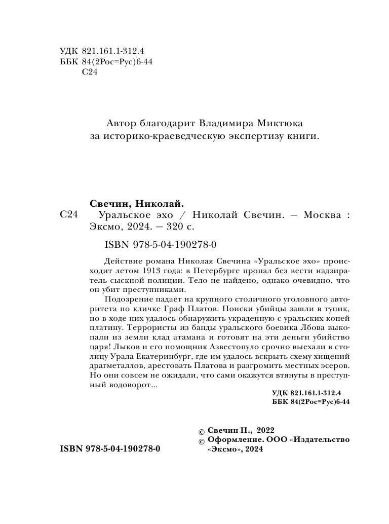 Книга: Уральское эхо (Свечин Николай Викторович); ООО "Издательство "Эксмо", 2024
