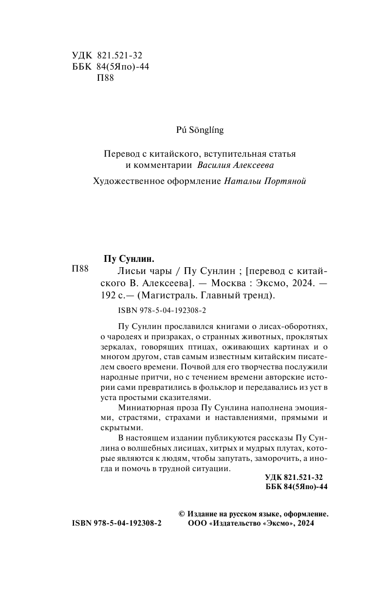 Книга: Лисьи чары (Пу Сунлин); ООО "Издательство "Эксмо", 2024
