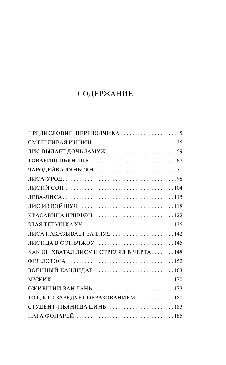 Пу Сун-лин прославился книгами о лисах-оборотнях, о чародеях и призраках, о странных животных, проклятых зеркалах, говорящих птицах, оживающих картинах и о многом другом, став самым известным китайским писателем своего времени. Почвой для его творчества послужили народные притчи, но с течением времени авторские истории сами превратились в фольклор и передавались из уст в уста простыми сказителями.Миниатюрная проза Пу Сулина наполнена эмоциями, страстями, страхами и наставлениями, прямыми и скрытыми. В настоящем издании публикуются рассказы Пу Сун-лина о волшебных лисицах, хитрых и мудрых плутах, которые являются к людям, чтобы запутать, заморочить, а иногда и помочь в трудной ситуации.