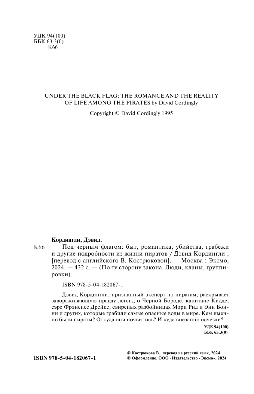Под черным флагом: быт романтика убийства грабежи и другие подробности из жизни пиратов (Кордингли Дэвид); ООО "Издательство "Эксмо", 2023