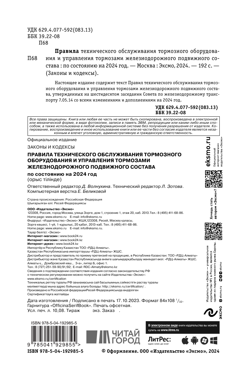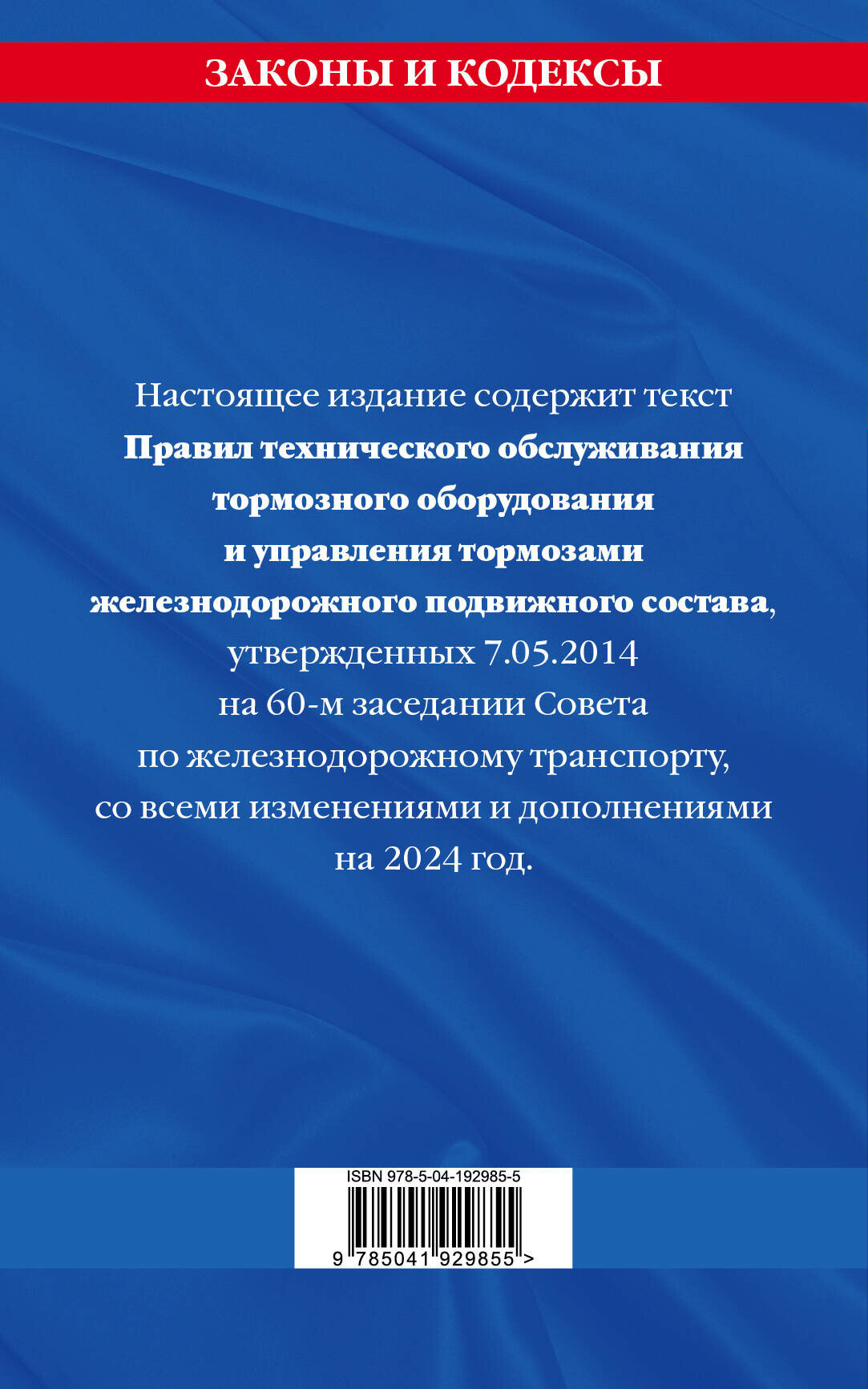 Правила технического обслуживания тормозного оборудования и управления тормозами железнодорожного подвижного состава по сост. на 2024 год (без автора); ООО "Издательство "Эксмо", 2024