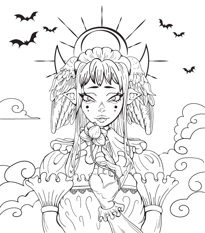 Ты обожаешь леденящую душу, но завораживающую готику? Тогда в этой раскраске ты найдешь все то, что ты так любишь: мрачные замки, причудливые витражи, зловещие амулеты и пугающих, но притягательных персонажей. Скорее бери в руки карандаши и проникнись мрачным очарованием героев. Наполни страницы всеми оттенками темного!