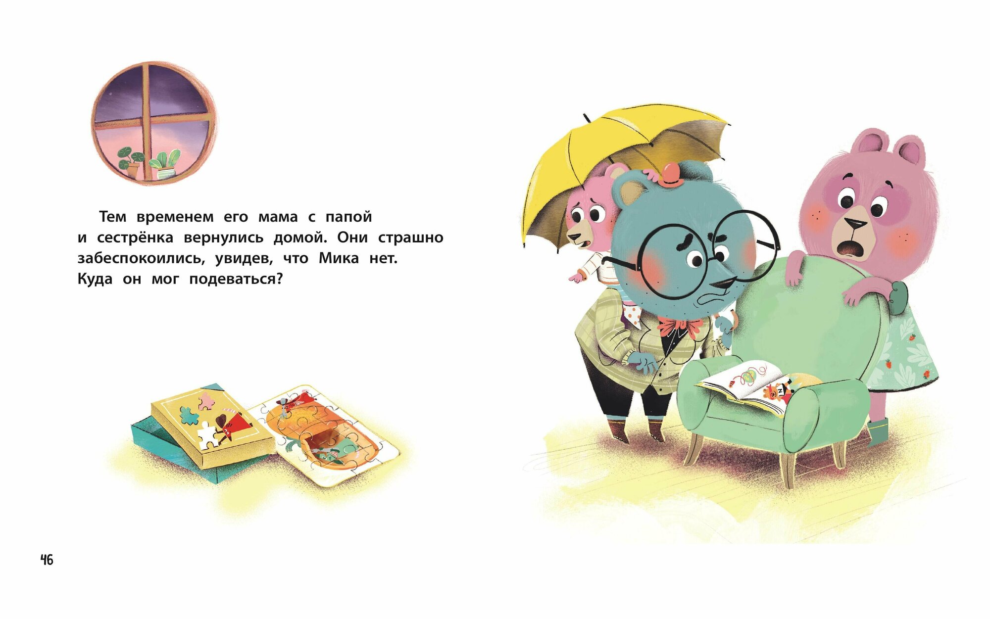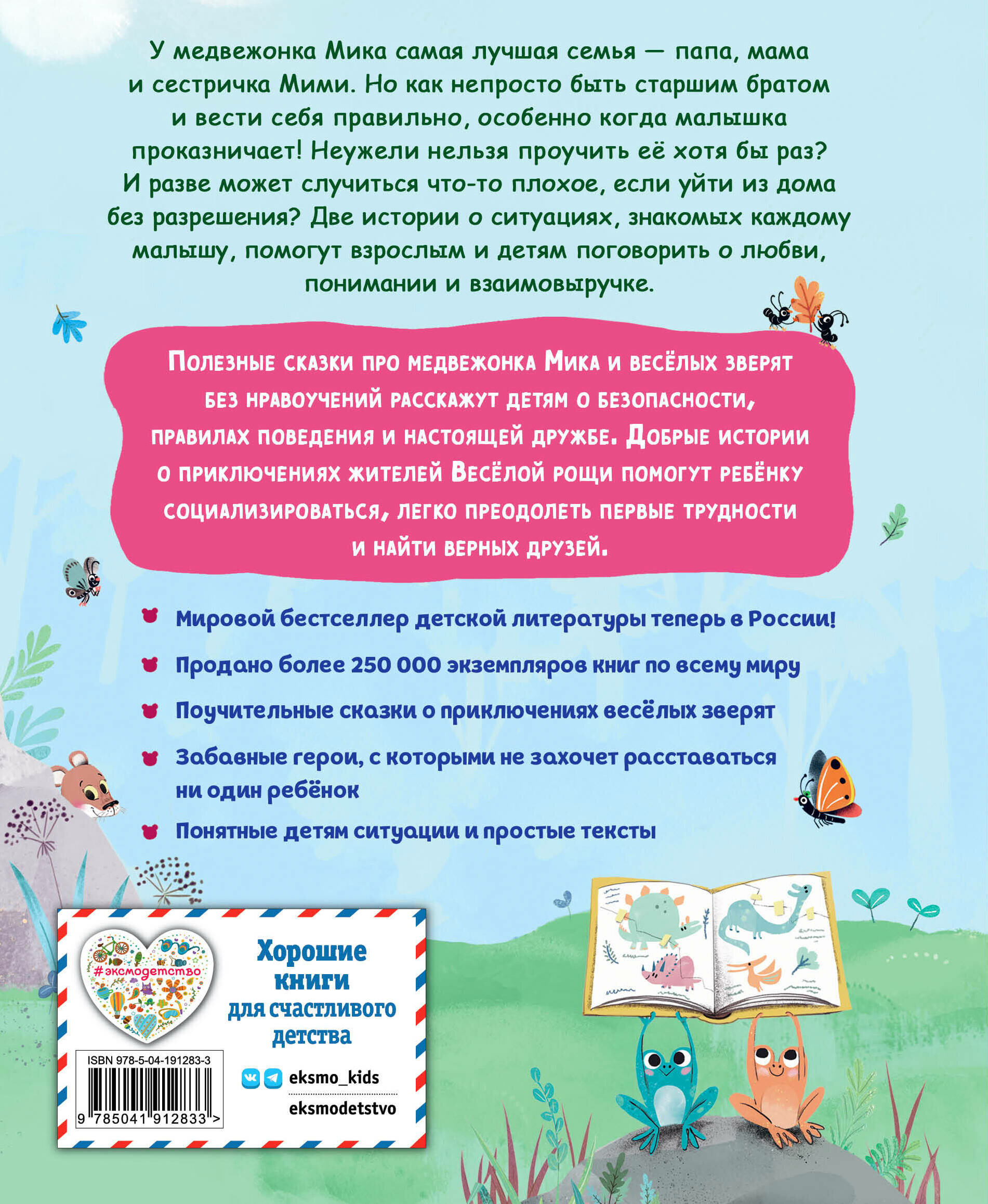 Мировой бестселлер детской литературы теперь в России! Полезные сказки о приключениях весёлого медвежонка и его друзей-зверят расскажут детям о правилах поведения, безопасности и настоящей дружбе. В сборник вошли две поучительные истории. «Большая ссора» Тяжело быть старшим братом. Медвежонок Мик ужасно рассержен на свою сестрёнку Мими. Она взяла без спросу и порвала его любимую книгу. Мик решает проучить малышку. Но стоит ли затевать ссору? «Ночное приключение» Сегодня медвежонок Мик остался дома один. Его родители и сестрёнка Мими ушли в гости к тётушке. «Это недалеко, я найду дорогу!» — думает он и отправляется в лес. Вскоре мишка понимает, что заблудился, а ведь на улице уже совсем темно. Что же делать? Неужели никто не найдёт бедняжку Мика? Не беда! В самый сложный момент друзья придут на помощь!