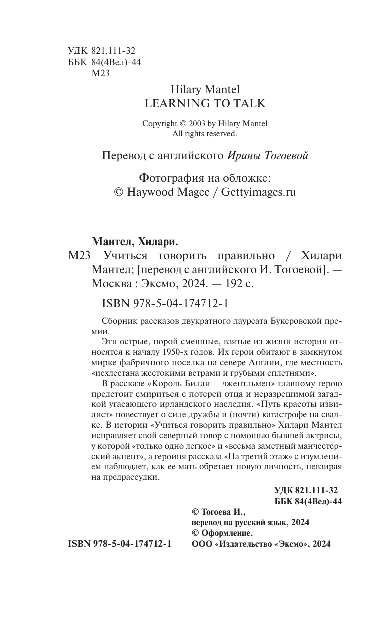 Учиться говорить правильно (Хилари Мантел); Эксмо, Inspiria, Редакция 1, 2023