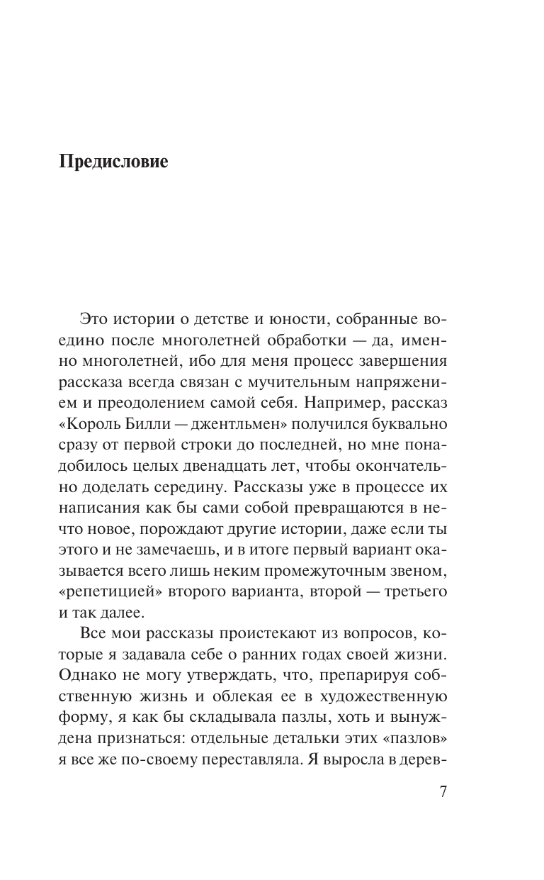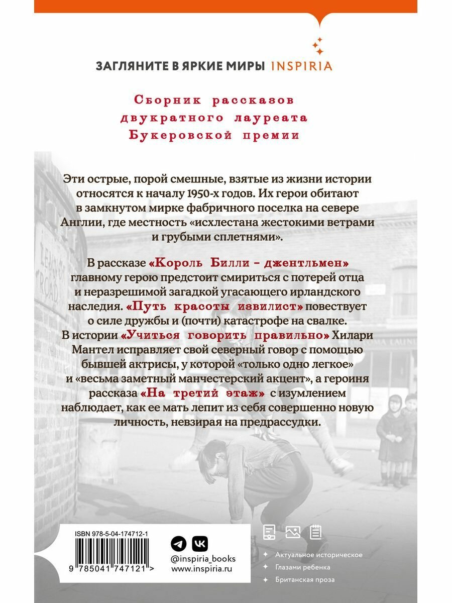 Сборник рассказов двукратного лауреата Букеровской премии.Эти острые, порой смешные, взятые из жизни истории относятся к началу 1950-х годов. Их герои обитают в замкнутом мирке фабричного поселка на севере Англии, где местность «исхлестана жестокими ветрами и грубыми сплетнями».В рассказе «Король Билли – джентльмен» главному герою предстоит смириться с потерей отца и неразрешимой загадкой угасающего ирландского наследия. «Путь красоты извилист» повествует о силе дружбы и (почти) катастрофе на свалке. В истории «Учиться говорить правильно» Хилари Мантел исправляет свой северный говор с помощью бывшей актрисы, у которой «только одно легкое» и «весьма заметный манчестерский акцент», а героиня рассказа «На третий этаж» – с изумлением наблюдает, как ее мать обретает новую личность невзирая на предрассудки.