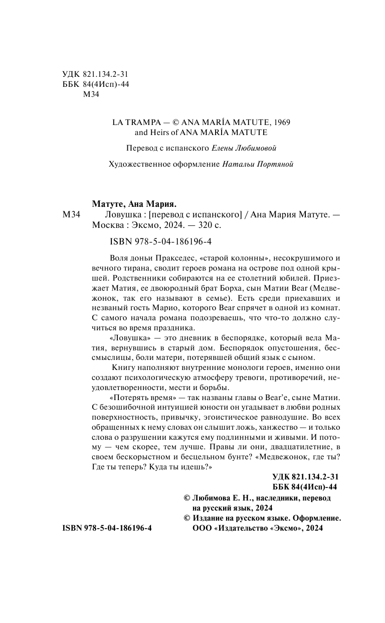 Книга: Ловушка (Анна Мария Матуте); Эксмо, Редакция 1, 2023