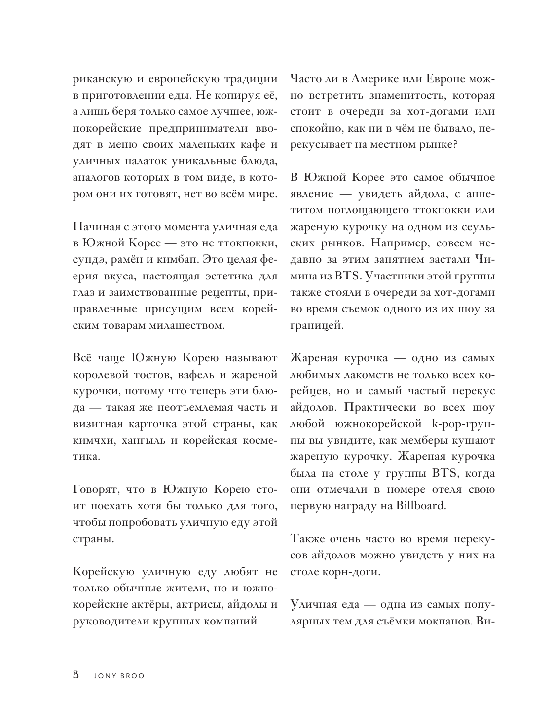 С помощью новой книги от Jony Broo вы научитесь повторять культовые рецепты корейских уличных блюд у себя на кухне. Ттокпокки, корн-доги, жареная курочка и многие другие легендарные блюда — всё это можно легко приготовить своими руками с помощью простых ингредиентов, которые можно найти практически в любом магазине!